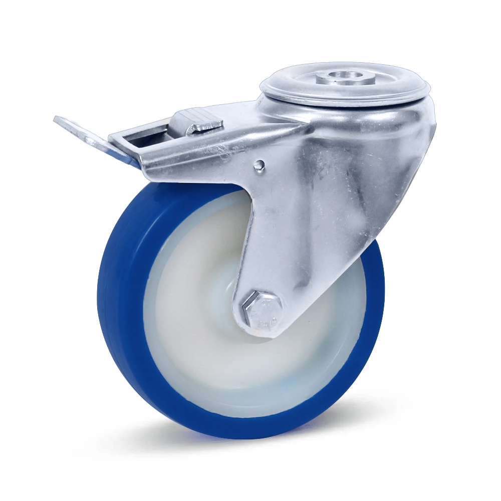 Ruota girevole in acciaio inox blu PU frenata con foro centrale - 100mm - 180kg