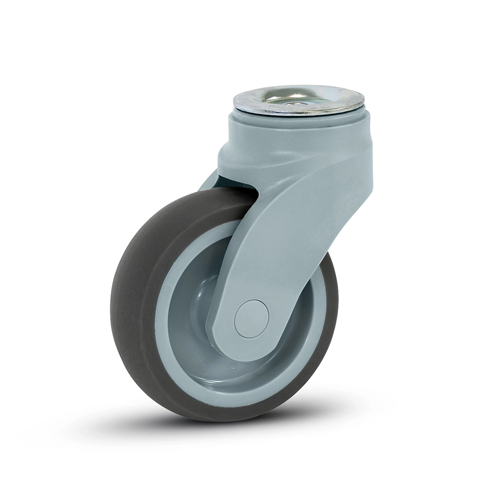 Ruota girevole in plastica grigia con foro per bullone - 100mm - 100kg