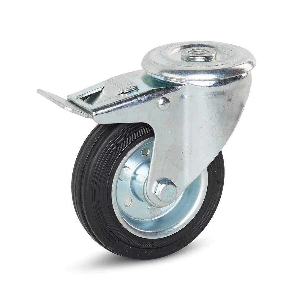 Ruota girevole in gomma inodore frenata con foro centrale - 100mm - 100kg