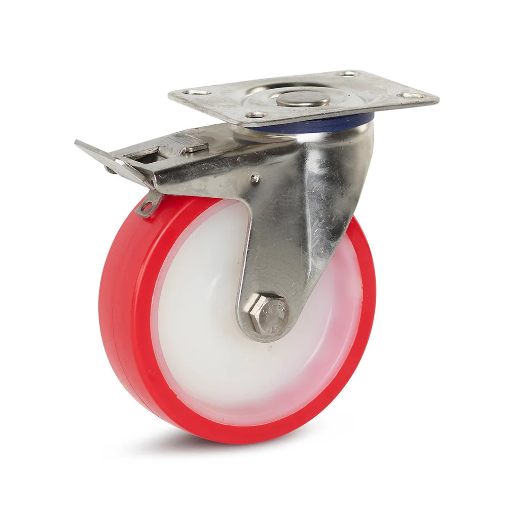 Ruota girevole in acciaio inox PU frenata con piastra superiore - 125mm - 220kg
