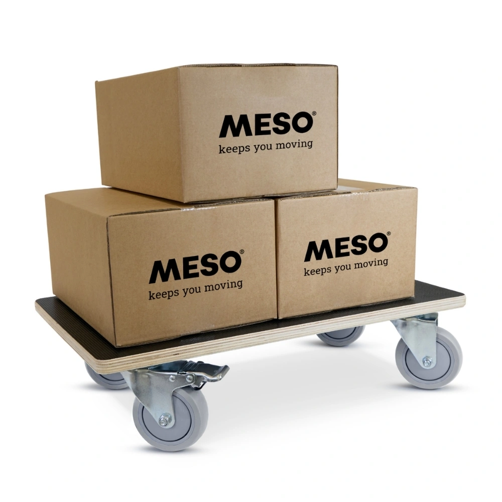Questo rullo per mobili con ruote in gomma e due ruote piroettanti frenate combina comfort e sicurezza. Il modello da 575 x 350 mm può trasportare carichi fino a 350 kg.
