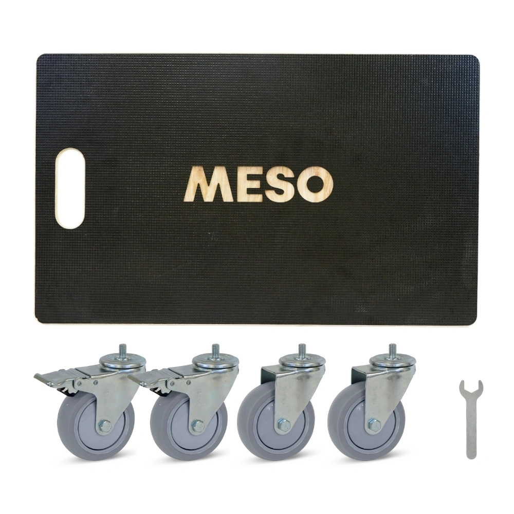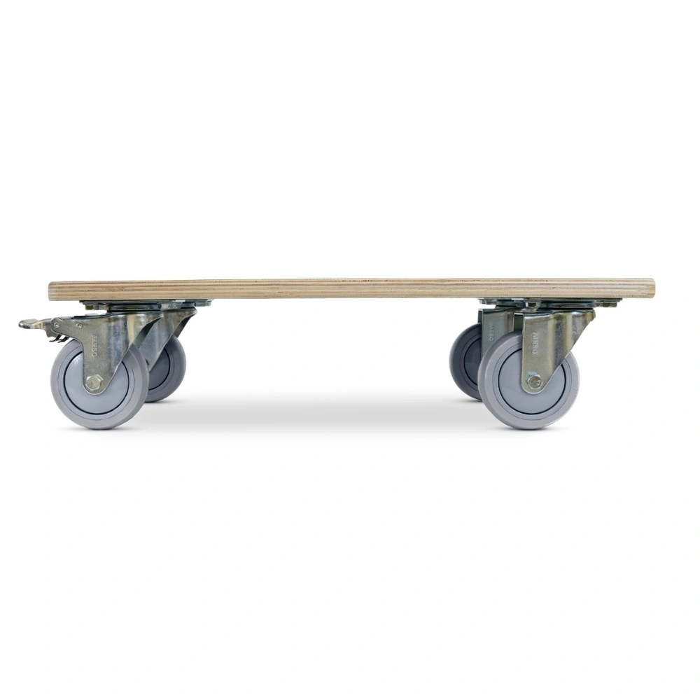 Rullo per mobili con ruote in gomma antivibranti, due ruote girevoli frenate, 575 mm x 350 mm e una capacità di carico di 350 kg.