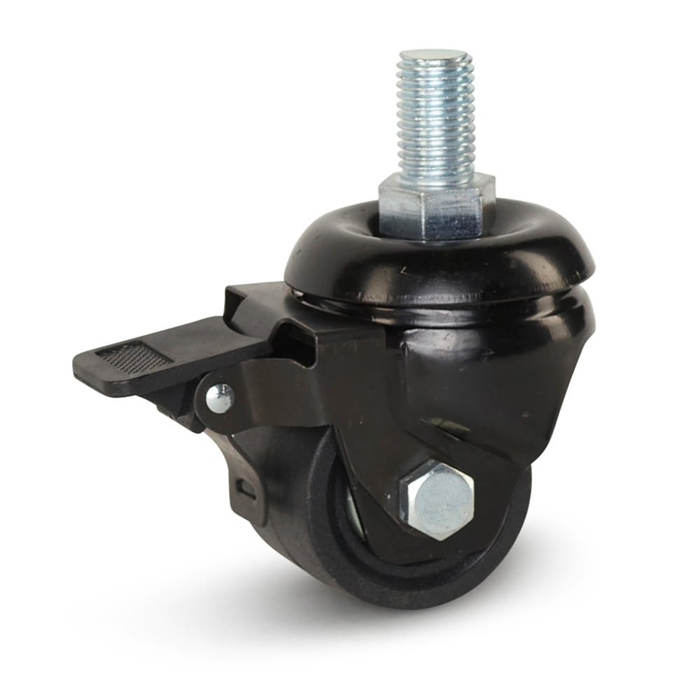 Ruota girevole in nylon nero per impieghi gravosi, frenata con filettatura - 50mm - 300kg