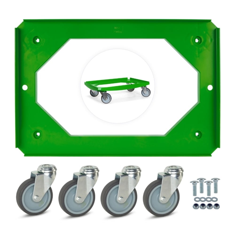 MESO - Carrello di trasporto - Piattaforma a rulli ABS - Verde - Piano di carico 600 x 400mm - 4 ruote girevoli in TPR - 100mm - 250kg