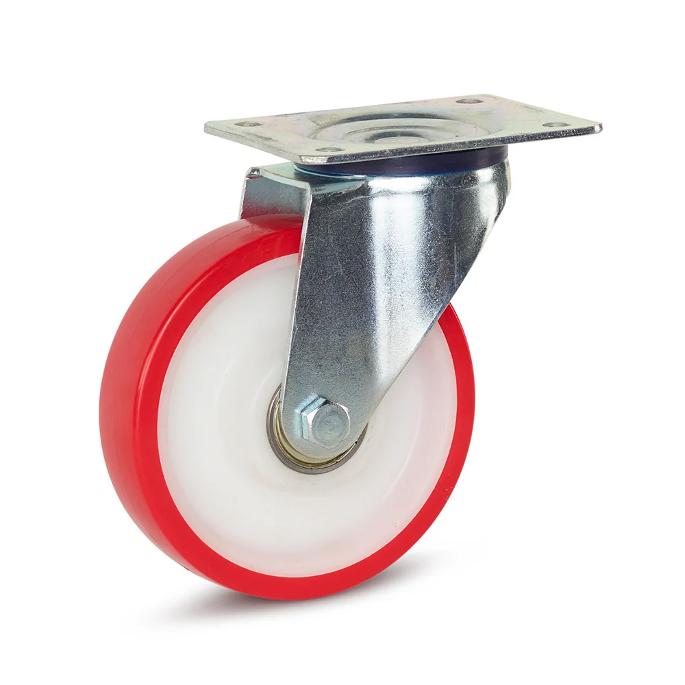 Ruota girevole con diametro di 160 mm e portata di 330 kg. Il pneumatico è in poliuretano e il nucleo della ruota in polipropilene, quindi è adatto a varie applicazioni in cui sono richieste capacità di carico più elevate.
