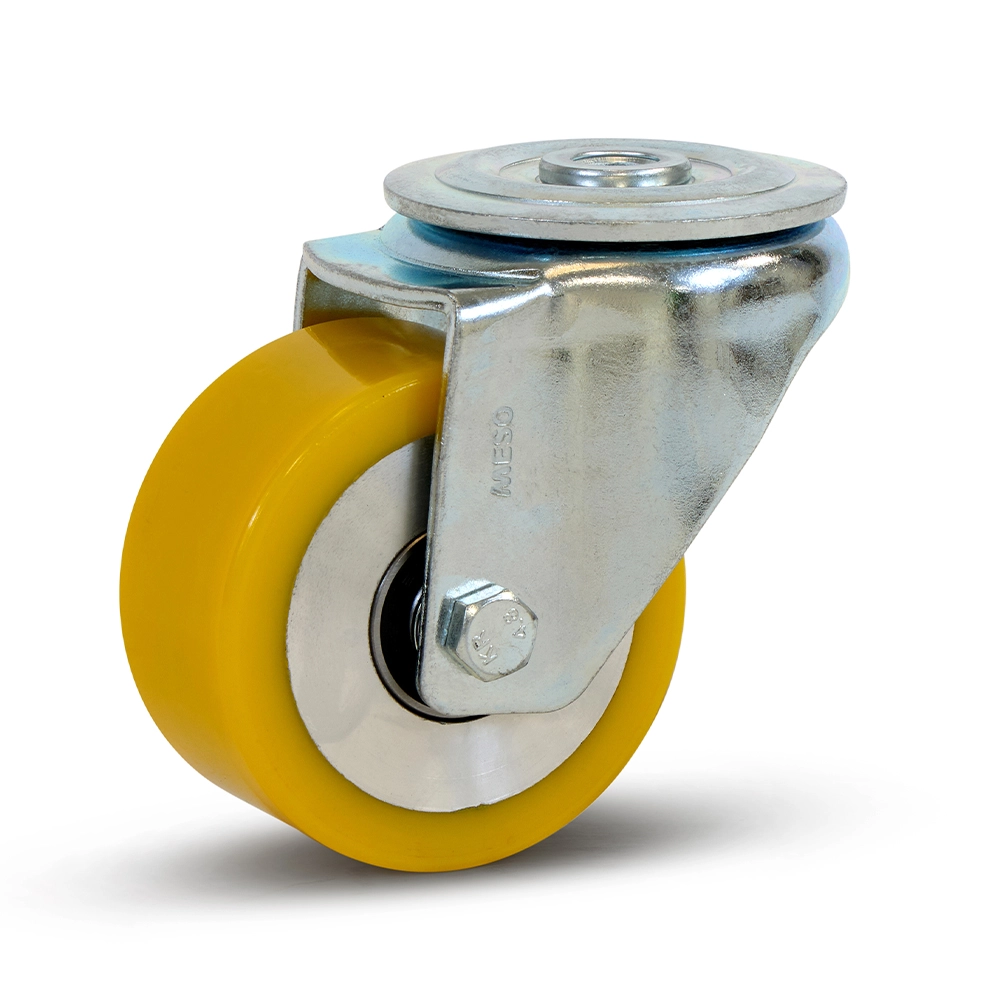 Ruota girevole in PU per impieghi gravosi con foro per bulloni - 80 mm - 300 kg
