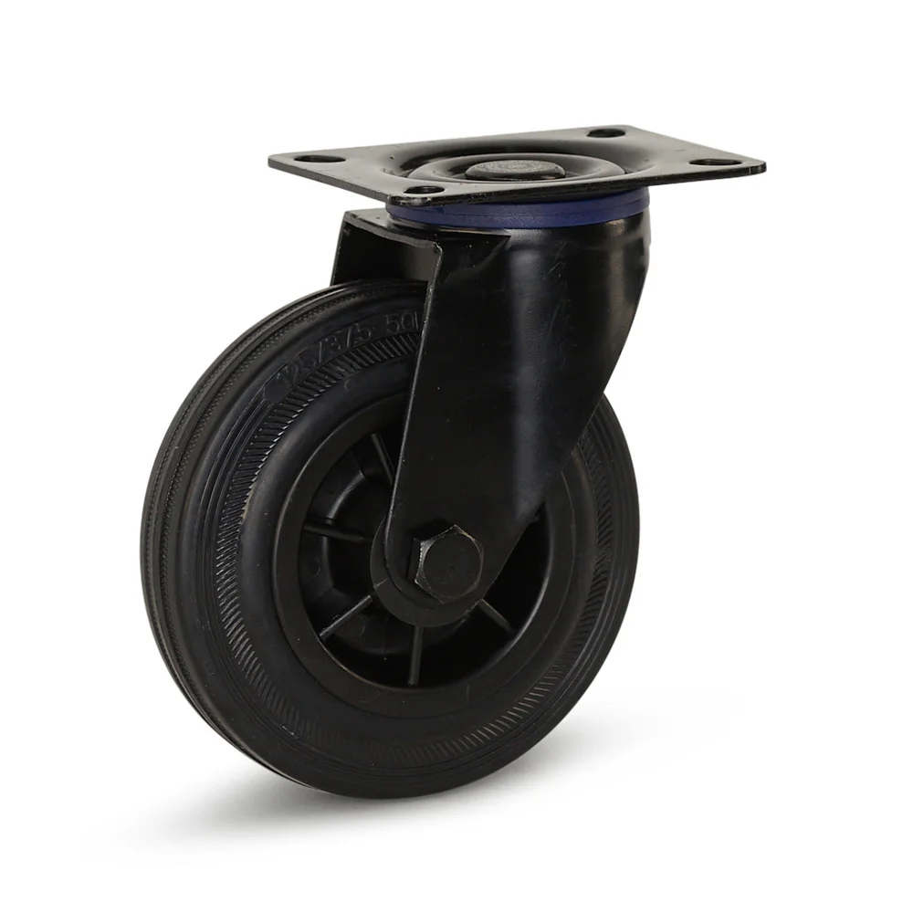 Ruota girevole in gomma nera con piastra superiore - 125mm - 150kg