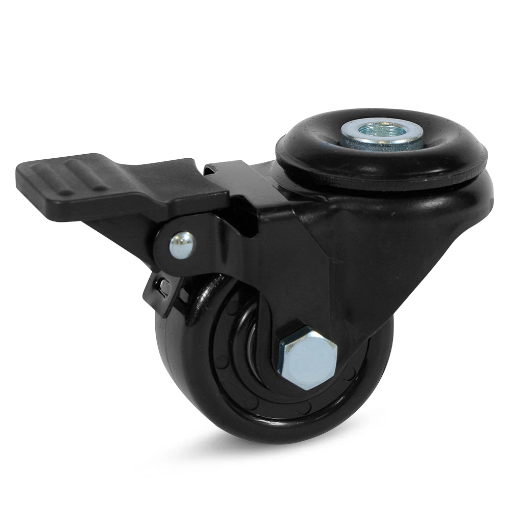 Ruota girevole in nylon nero con freno a foro centrale - 50 mm - 150 kg